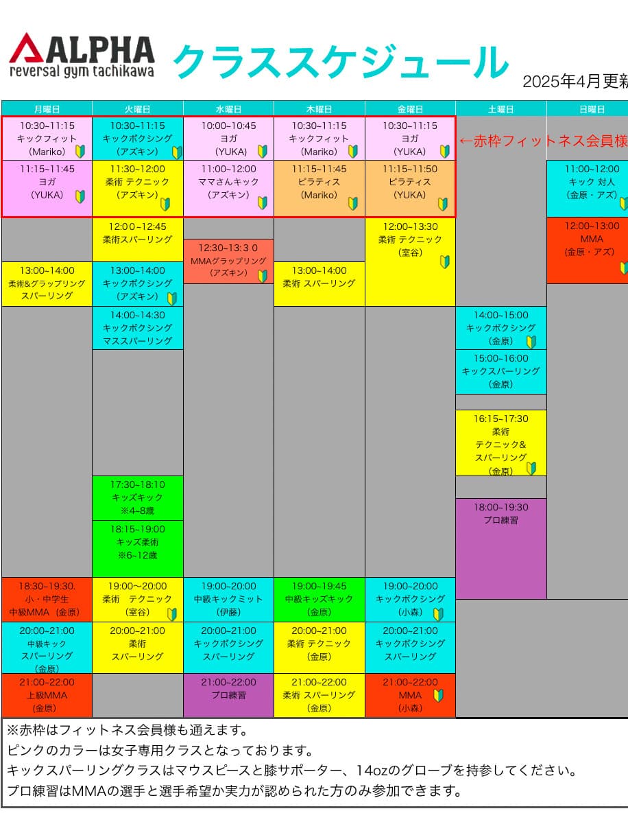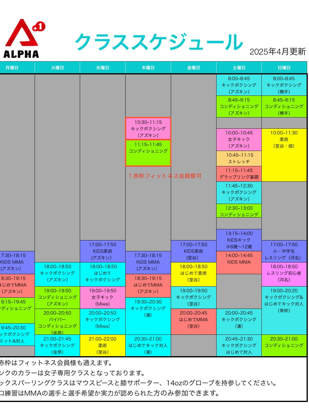 ●ALPHA+1は全てのクラスが初心者専用クラスです。